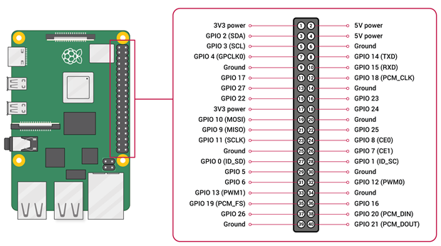 ์ถ์ฒ: https://gpiozero.readthedocs.io ์ ์ 2๊ฐ์ 5Vํ๊ณผ 2๊ฐ์ 3.3Vํ, 8๊ฐ์ 0V GNDํ์ด ์์ต๋๋ค.