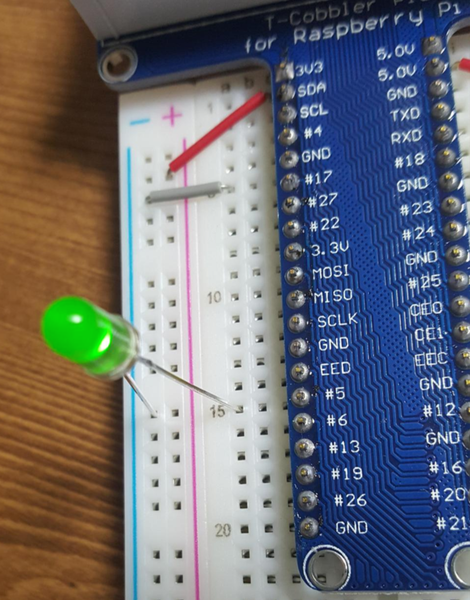 ์ด๋ GPIO๋ฅผ ์ฌ์ฉํ๋ฉด LED๋ฅผ ์ ์ดํ ์ ์์ต๋๋ค. LED์ ๊ธด ๋ค๋ฆฌ๋ฅผ GPIO์ ์ฐ๊ฒฐํ์ฌ ์ฐ๊ฒฐ๋ GPIO์ ์ ํธ(3.3V)๋ฅผ ๋ณด๋ด๋ฉด ๋ถ์ ์ผ๊ฑฐ๋ ๋ ์ ์์ต๋๋ค.