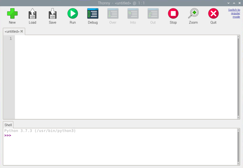 ์ง๊ธ๊น์ง ์ฐ๋ฆฌ๋ Windows ํ๊ฒฝ์์ Python ํ๋ก๊ทธ๋จ์ ์ค์นํ๊ณ IDLE์ ์คํํ์ฌ Python ํ๋ก๊ทธ๋๋ฐ์ ํด์์ต๋๋ค. ๋ผ์ฆ๋ฒ ๋ฆฌํ์ด์ ๋ผ์ฆ๋น์ ์ด์์ฒด์ ๋ฅผ ์ค์นํ๋ฉด ๊ธฐ๋ณธ์ ์ผ๋ก Python ํ๋ก๊ทธ๋จ์ด ์ค์น๋์ด์์ต๋๋ค. Windows์์ IDLE ์ญํ ์ ํ๋ Thonny Python IDE๋ฅผ ์คํํ์ฌ Python ํ๋ก๊ทธ๋๋ฐ์ ํด๋ณด๊ฒ ์ต๋๋ค.