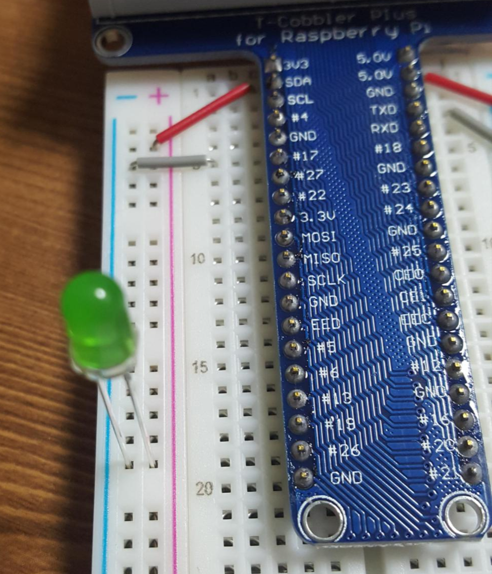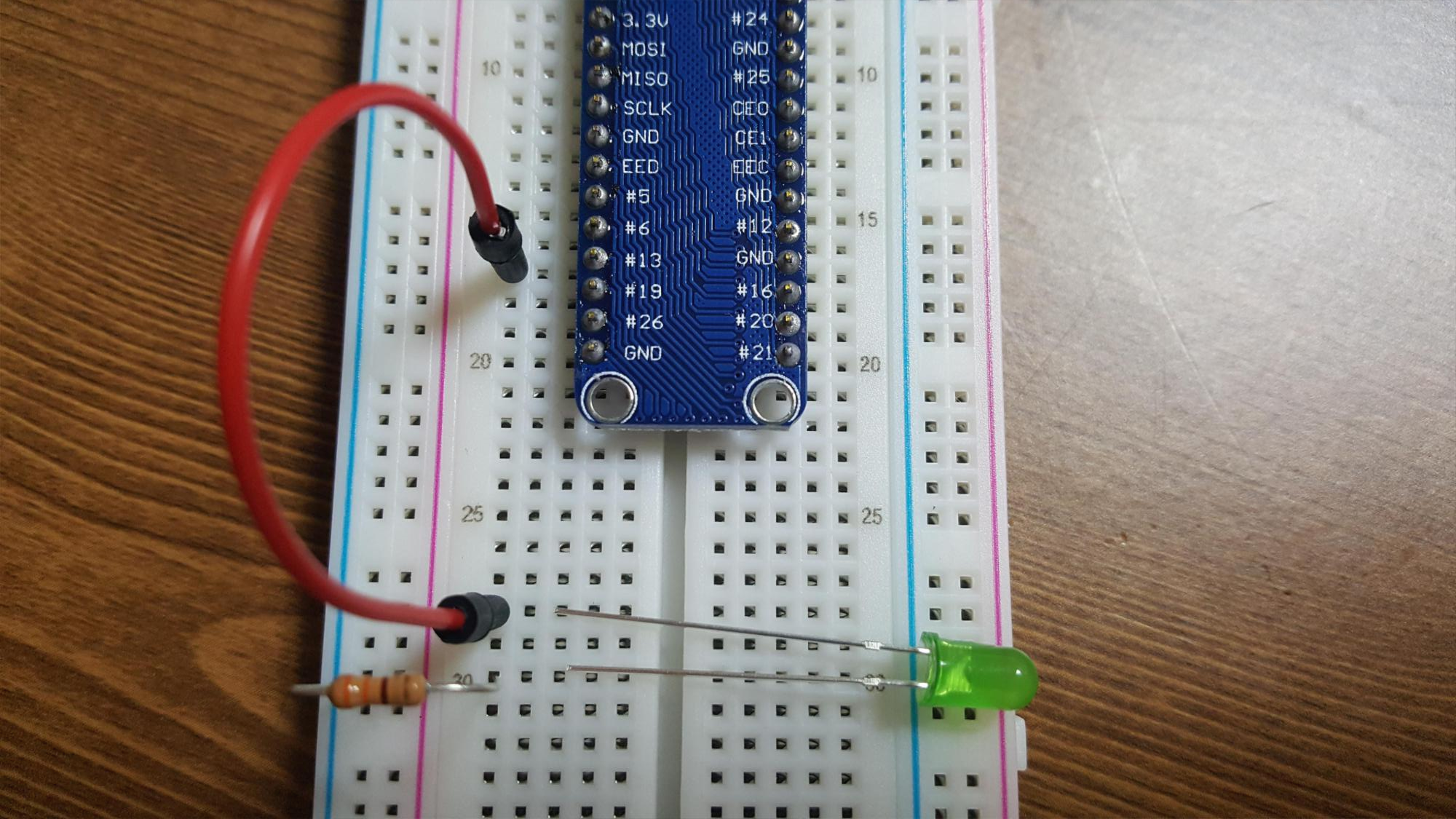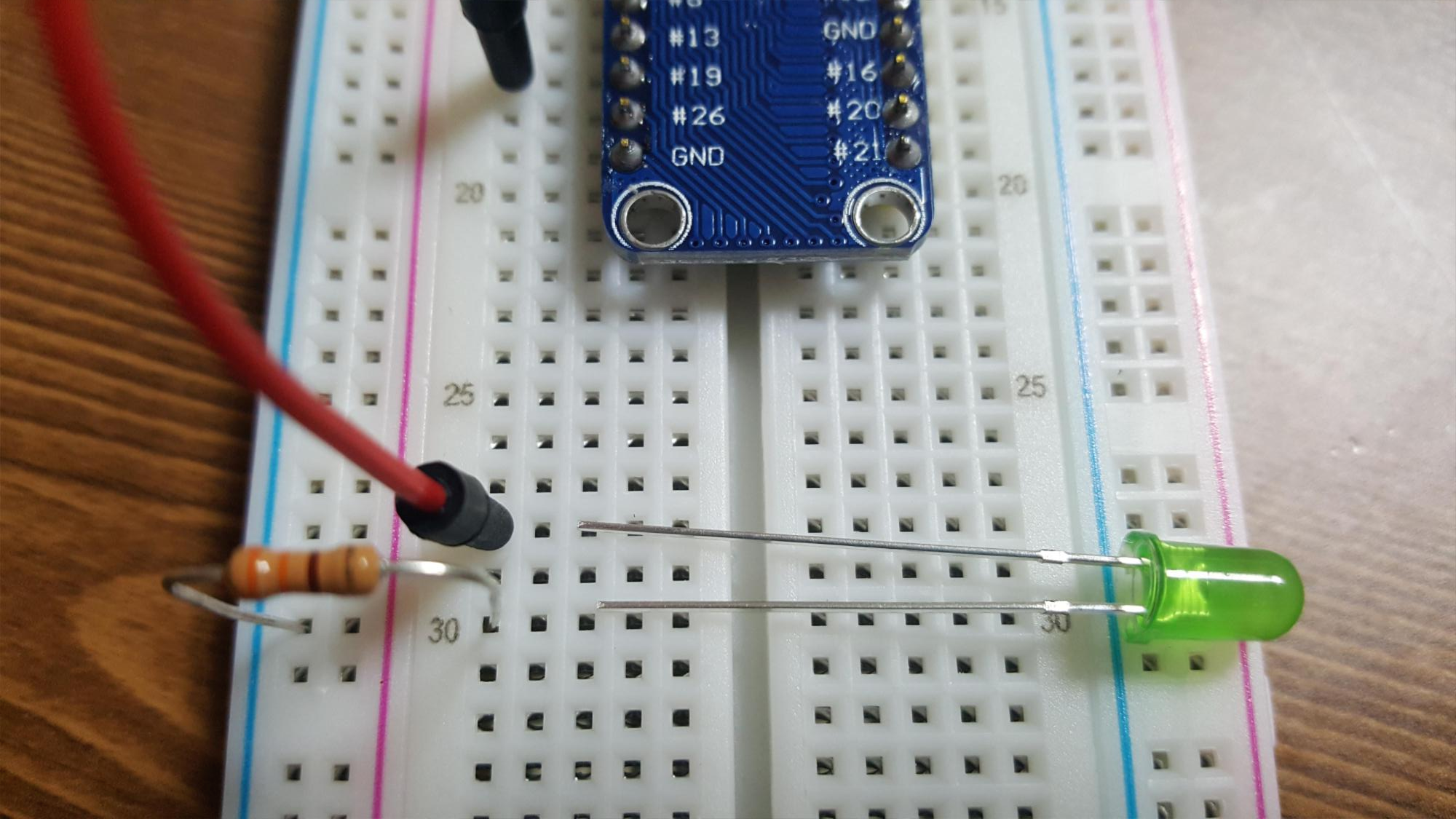์ด๋ GPIO๋ฅผ ์ฌ์ฉํ๋ฉด LED๋ฅผ ์ ์ดํ ์ ์์ต๋๋ค. LED์ ๊ธด ๋ค๋ฆฌ๋ฅผ GPIO์ ์ฐ๊ฒฐํ์ฌ ์ฐ๊ฒฐ๋ GPIO์ ์ ํธ(3.3V)๋ฅผ ๋ณด๋ด๋ฉด ๋ถ์ ์ผ๊ฑฐ๋ ๋ ์ ์์ต๋๋ค.
