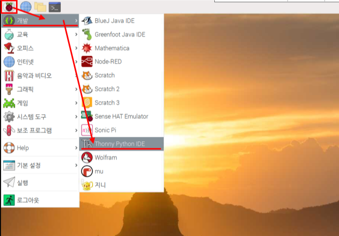 [๋ผ์ฆ๋น์ ์์ด์ฝ] - [๊ฐ๋ฐ] - [Thonny Python IDE]