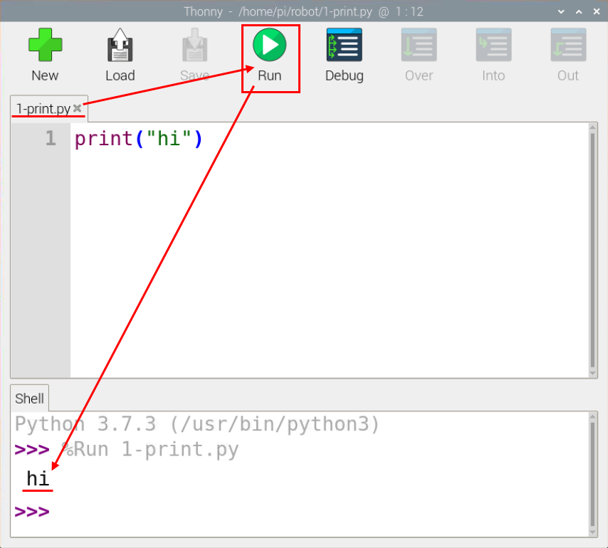 Thonny Python IDE์์ ๊ฐ๋จํ ํ๋ก๊ทธ๋จ์ ๋ง๋ค๊ณ ํด๋์ ์ ์ฅํด์ ์คํํด๋ณด๊ฒ ์ต๋๋ค.