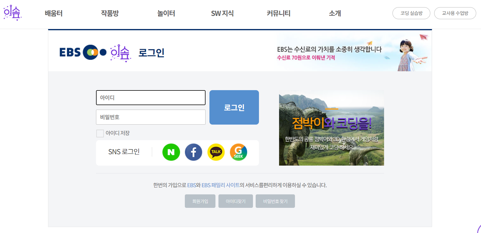 μ΄μ¦ λλ¦¬μ§ μ΄μ¦ λ리μ§μμλ EBS μμ΄λκ° νμν©λλ€. μμ΄λκ° μλ€λ©΄ μ€λ₯Έμͺ½ μλ¨μ μ¬λλͺ¨μμ ν΄λ¦νμ¬ λ‘κ·ΈμΈμ ν©λλ€. μ€λΉλ μμ΄λκ° μλ€λ©΄ μ¬λλͺ¨μ μμ΄μ½μ ν΄λ¦νμ¬ νμκ°μ μ μ§νν©λλ€.
