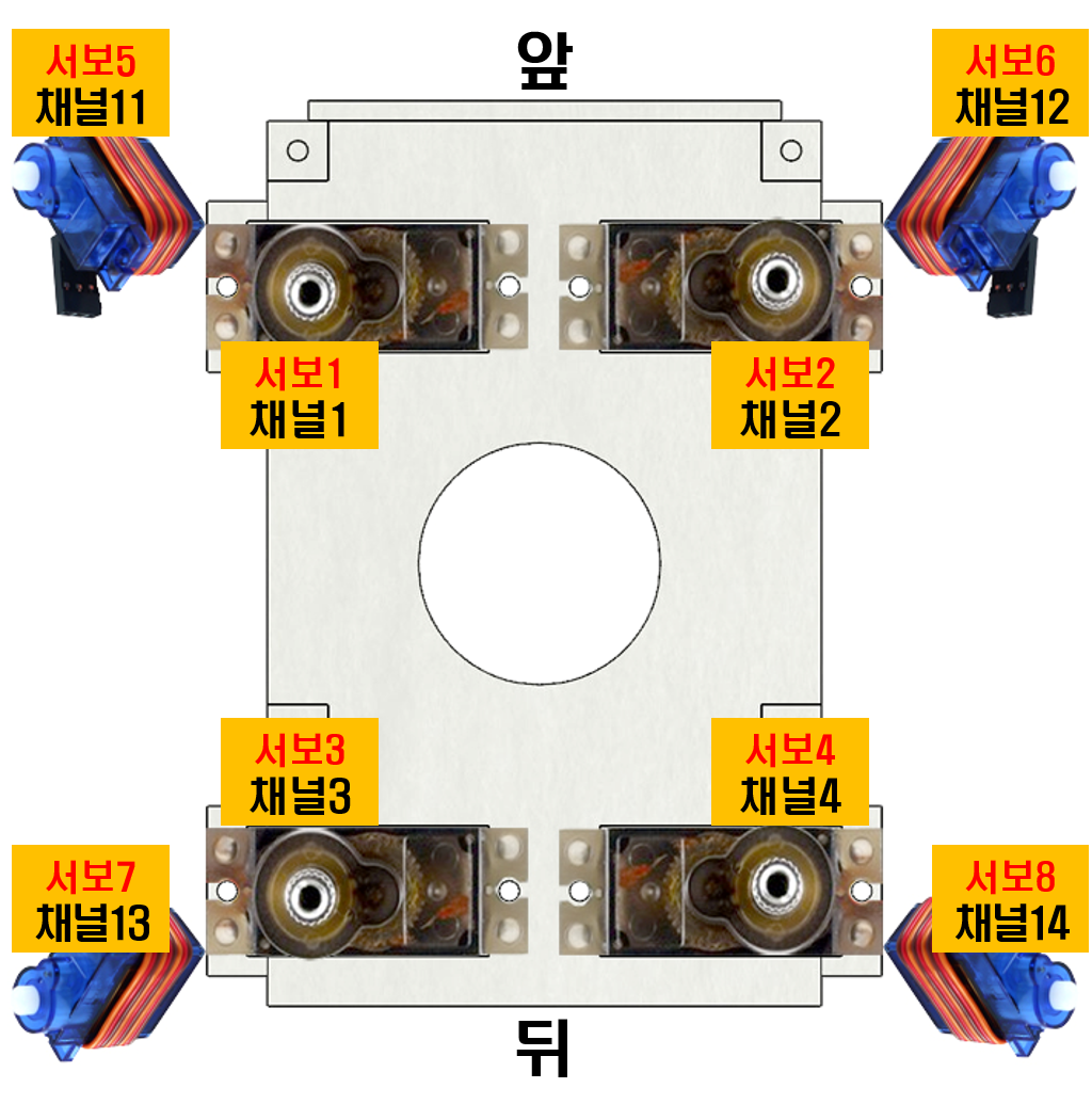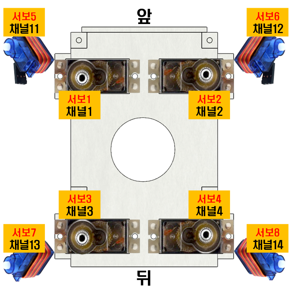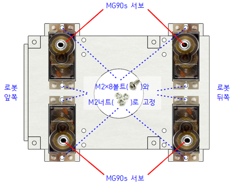 MG90S ์๋ณด๋ชจํฐ๋ฅผ ๋ชธ์ฒด์ ์กฐ๋ฆฝํ ๋์๋ ๋ชจํฐ์ ๊ธฐ์ด๊ฐ ๋ฐ๊นฅ์ชฝ์ผ๋ก ์์นํ๊ฒ ์กฐ๋ฆฝํด์ผ ํจ์ ์ ์ํ์ฌ ๋ง๋ญ๋๋ค.