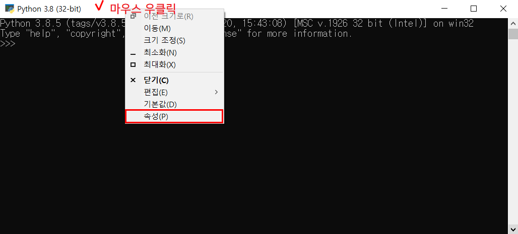 ํ์ด์ฌ ์ ธ ์์ฑ ๋ฐ๊พธ๊ธฐ ์ ธ์์ ๋ณด์ด๋ ๊ธ์ ํฌ๊ธฐ๊ฐ ๋๋ฌด ์์ ๋ถํธํ๋ค๋ฉด ์์ฑ์์ ๊ธ์ ํฌ๊ธฐ๋ฅผ ๋ณ๊ฒฝํ ์ ์์ต๋๋ค. ํ์ด์ฌ ์ ธ ์๋จ์์ ๋ง์ฐ์ค ์ฐํด๋ฆญ์ ํ์ฌ ์์ฑ ์ฐฝ์ ๋ถ๋ฌ์ต๋๋ค.