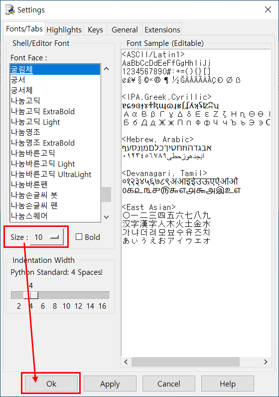ํ์ ํ๋ก๊ทธ๋จ์ ์์ฑํ ๋ ์ฌ์ฉํ ๊ธ๊ผด๊ณผ ๊ธ์ ํฌ๊ธฐ๋ฅผ ์ค์ ํฉ๋๋ค.