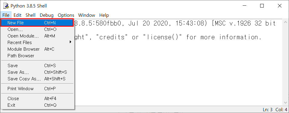 New File IDLEμμ File - New Fileμ μ νν©λλ€.