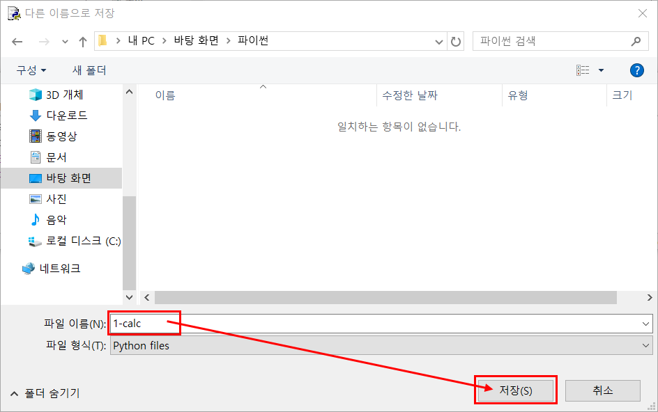 Save μμΌλ‘ νμ΄μ¬ 곡λΆλ₯Ό νλ©° λ§λ€ νλ‘κ·Έλ¨μ μ μ₯ν ν΄λλ‘ μ΄λνμ¬ νμΌ μ΄λ¦μ μμ±νκ³ μ μ₯μ ν΄λ¦ν΄ μ€λλ€.