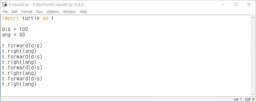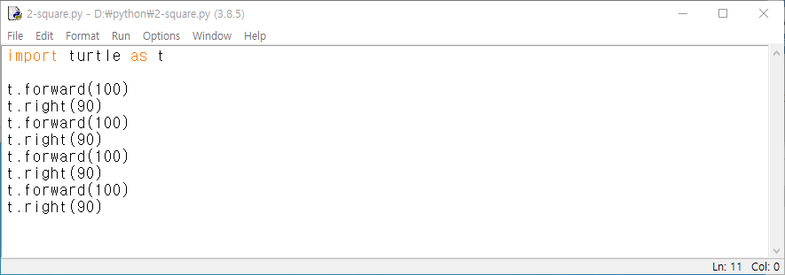 μμ μμ€(2-square.py) import turtle as t