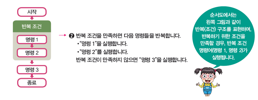 < ์ถ์ฒ : ์ํํธ์จ์ด์ ํจ๊ปํ๋ ์ฐฝ์๋ ฅ ์ฌํ > ๋ฐ๋ณต ๊ตฌ์กฐ์๋ ์ ํด์ง ํ์ ๋งํผ๋ง ๋ฐ๋ณตํ๋ ๊ฒ๋ ์์ง๋ง ์กฐ๊ฑด์ ๋ง์กฑํ๋ ๊ฒฝ์ฐ์๋ ๊ณ์ ๋ฐ๋ณตํ๋ ๋ฐ๋ณต ์กฐ๊ฑด ๊ตฌ์กฐ๋ ์์ต๋๋ค. ์ด๋ ์กฐ๊ฑด์ ๋ง์กฑํ๋ ๊ฒ์ ์ฐธ(๋๋ True)์ด๋ผ๊ณ ํ๊ณ ๋ง์กฑํ์ง ์๋ ๊ฒฝ์ฐ๋ฅผ ๊ฑฐ์ง(๋๋ False)์ด๋ผ๊ณ ํฉ๋๋ค.