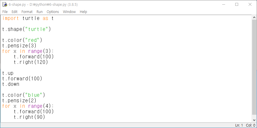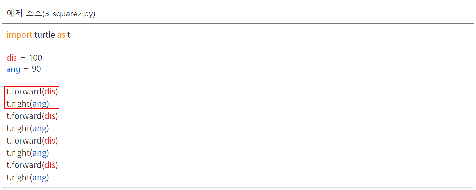 t.right(ang)์์ ์์ค(4-square.py) import turtle as t